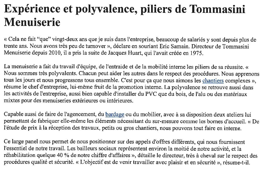 • Expérience et polyvalence, piliers de Tommasini Menuiserie
